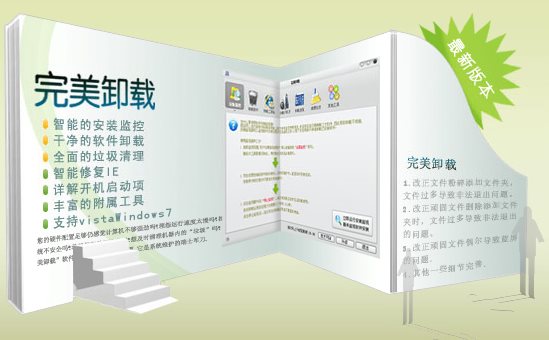 完美卸載是一款功能強(qiáng)大的強(qiáng)力卸載軟件,完美卸載集成了完美殺毒伴侶、系統(tǒng)漏洞掃描專家、增強(qiáng)的系統(tǒng)保護(hù)大師、黃金內(nèi)存、天盾防火墻等重量級(jí)工具,幫助您解決電腦運(yùn)行過(guò)慢,C盤(pán)空間不足,虛擬內(nèi)存不足,木馬或流氓軟件檢測(cè),IE打開(kāi)網(wǎng)頁(yè)速度過(guò)慢,安裝了軟件卻不知怎么卸載等等問(wèn)題。