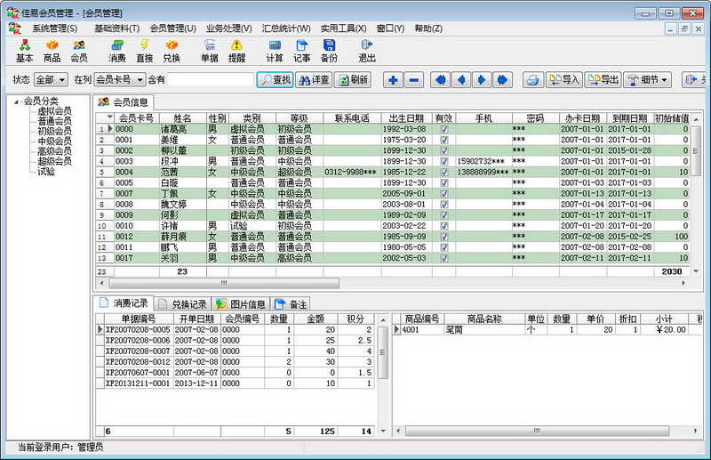 佳易會員管理實現(xiàn)了對會員的基本信息、消費、積分、儲值和升級續(xù)費等管理功能,兼具會員等級、商品資料管理、票據(jù)打印及查詢統(tǒng)計等功能,能滿足商品銷售、餐飲、美容、醫(yī)藥、娛樂等服務行業(yè)進行會員制管理的需要,幫助經(jīng)營者實現(xiàn)科學高效的經(jīng)營管理理念。軟件界面美觀、操作簡便,易用實用、性能穩(wěn)定,是一款優(yōu)秀的會員管理軟件。【軟件特點】