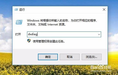 2、點(diǎn)擊運(yùn)行后,在彈出的對(duì)話框中輸入,DXDIAG,點(diǎn)擊確定