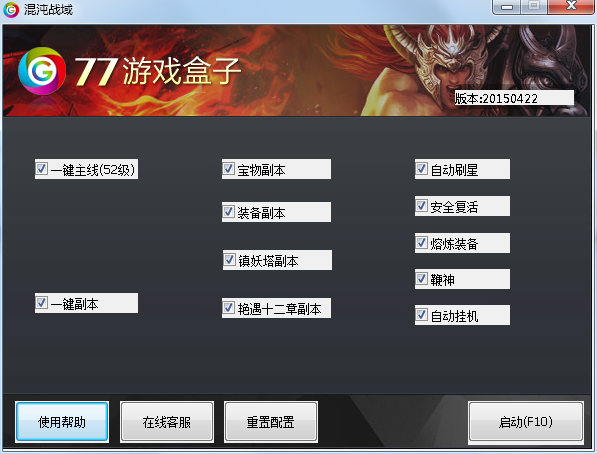 77混沌戰(zhàn)域盒子是混沌戰(zhàn)域游戲中的一款輔助工具。該工具可以輕松幫助玩家一鍵升級主線52級,并有超多游戲副本天天刷,自動掛機等游戲功能,有需要的玩家可千萬不要錯過了。