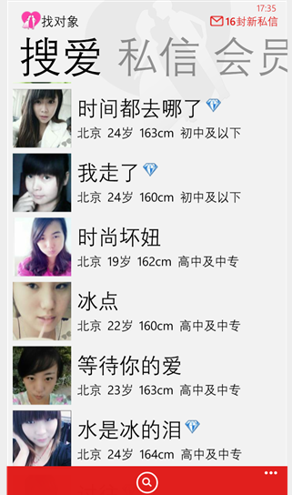 找對象wp8版是一款幫助用戶結(jié)交對象的軟件,現(xiàn)在相親不是一件丟人的事,人人不得不為自己的未來做好打算。找對象上收錄的都是正規(guī)網(wǎng)站的注冊信息,用戶可以匹配對象,更過給力功能趕快來下載體驗(yàn)吧