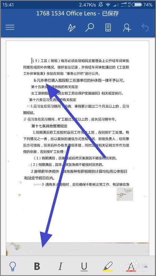 拍攝完成之后, Office Lens 會簡單的對圖片進(jìn)行剪切和美白處理,如果我們還有其他的需求,還可以使用上方的工具對圖片進(jìn)行一些簡單的處理,處理完成之后點(diǎn)擊下方的保存按鈕。