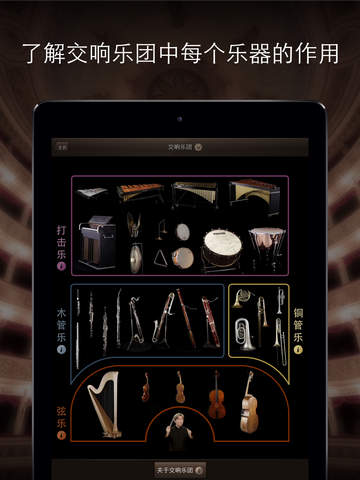 觀看備受贊譽的愛樂樂團的優(yōu)美多攝像機視頻,并毫不費力地切換不同的角度或樂團的各個部分。世界級的音樂家解釋他們在樂隊中的作用,并演示他們的樂器是如何工作的。使用鍵盤玩樂器示范、 360°旋轉查看每一個精美的細節(jié)。