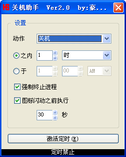 豪士定時(shí)關(guān)機(jī)小助手是一款可以設(shè)置倒計(jì)時(shí)/定時(shí)關(guān)機(jī)、掛起、注銷、重啟、提醒、鎖定、睡眠的關(guān)機(jī)工具,傻瓜化的操作界面,無(wú)需任何幫助教程便可使用豪士定時(shí)關(guān)機(jī)小助手。
