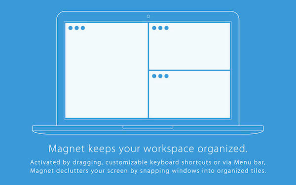 小屏幕一直是 15寸以下 Mac 用戶心中永遠(yuǎn)的痛,屏幕尺寸的限制讓你不得不花費(fèi)心思去設(shè)計(jì)如何在有限的屏幕內(nèi)同時(shí)放入更多的窗口以此來(lái)減少窗口切換時(shí)間,提高工作效率。Magnet for mac提供了上下左右,左上角、右上角。左下角、右下角以及全屏,恢復(fù)之前窗口尺寸等多種窗口定位,但實(shí)際操作起來(lái)還是讓我有些失望,因?yàn)橛泻芏?App 都設(shè)計(jì)了最小窗口尺寸,當(dāng)你需要設(shè)定“左上角、右上角。左下角、右下角”這組屏幕尺寸時(shí),許多 App 的尺寸和位置都不會(huì)按設(shè)定來(lái),這是比較讓人遺憾的地方。