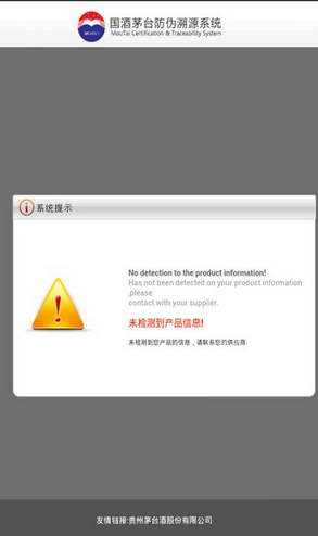 如果待測茅臺酒查詢失敗,則顯示如下圖所示的信息: