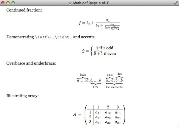 Texts for mac一大特色本領(lǐng)就是在輸出成PDF,HTML,WORD格式后能各種復(fù)雜的數(shù)學(xué)方程式完美的顯示出來,因?yàn)橛辛薠eLaTeX的配合才能如此完美,XeLaTeX是TeX電子排版技術(shù)的后現(xiàn)代主義版本。