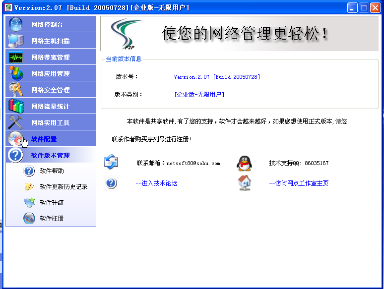 可以控制每一臺(tái)機(jī)器的上傳,下載的速度,還可以對(duì)通常的聊天軟件進(jìn)行限制。用了局域網(wǎng)搶網(wǎng)速(局域網(wǎng)網(wǎng)速控制器)軟件,只要他用bt下,我就給限制,改IP也沒用,隨時(shí)監(jiān)控。