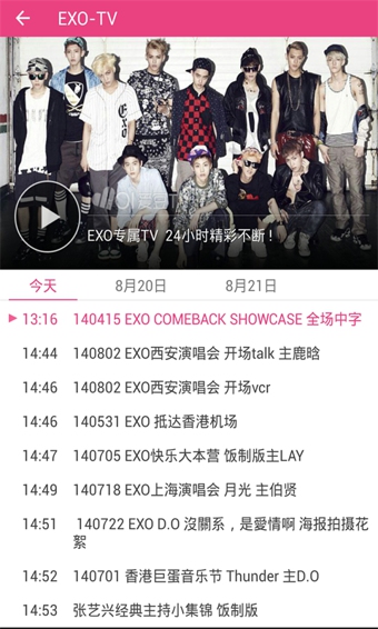 EXO,BigBang,TFBOYS,少女時(shí)代,金秀賢,鄧紫棋,張杰等演唱會(huì)直播、明星綜藝節(jié)目、電視劇、精選視頻等等。