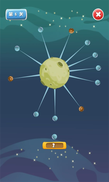 1.點(diǎn)擊屏幕,讓屏幕下方的小球成功連接到一直旋轉(zhuǎn)的星球上。2.所有的小球全部與星球成功連接,游戲通關(guān)。