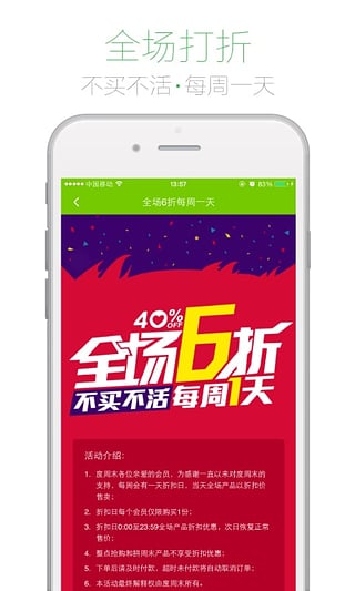 2.每周一天開啟全場打折!更低的價格,不變的品質(zhì)!