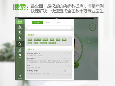 問(wèn)醫(yī)生:最簡(jiǎn)單、最快速咨詢健康問(wèn)題找醫(yī)生:便捷查找全國(guó)數(shù)十萬(wàn)專業(yè)醫(yī)生
