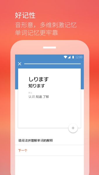 最最日語是一款手機日語學(xué)習(xí)輔助應(yīng)用,你可以通過它來記憶日語單詞,而且通過巧妙的方法能讓你記起來更加輕松,再也不必為記單詞而苦惱了。如果你正在學(xué)習(xí)日語的話,那就趕快來試試這款應(yīng)用吧!