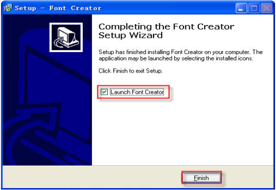 最后,確認(rèn)安裝信息后,點擊“Install”進(jìn)行安裝,勾選“是否啟動Font Creator”,點擊“Finish”,完成安裝。