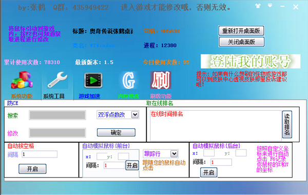 1、下載運(yùn)行輔助后,可單擊重新打開(kāi)桌面版,就可直接打開(kāi)奧奇?zhèn)髡f(shuō)桌面版,直接游戲。