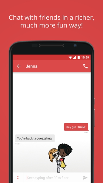 MimeChat軟件中你可以定制自己角色的外形,發(fā)型、膚色、服飾都可以,簡單線條勾勒出的形象也是很可愛。其最大的特色是用兩個卡通角色代表雙方,最贊的是這兩個角色是可以動的哦~。如果覺得互發(fā)表情斗圖都無法滿足溝通的欲望,一定來試試本軟件。