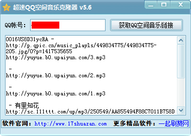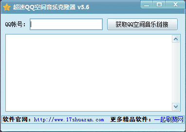超速Q(mào)Q空間音樂克隆器是一款精簡實(shí)用的QQ空間音樂克隆器,只需要輸入QQ號碼就可以獲取此QQ空間的所有背景音樂地址鏈接。