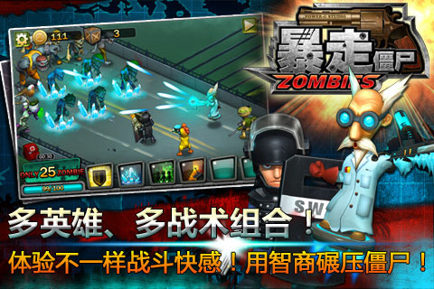 《暴走僵尸》是一款美漫風(fēng)的僵尸射擊手游,游戲中層出不窮的僵尸造型,各種奇葩、各種重口味應(yīng)有盡有。操作簡捷、節(jié)奏明快、畫面絢麗、游戲平衡勢(shì)必打造極具震撼的僵尸題材手游。面對(duì)如潮水一般的僵尸群你要怎么做?放棄那些傻傻的植物吧,只有人類才能拯救世界。讓手中的電鋸與機(jī)槍瘋狂的殺戮所有敵人,讓人類僅存的希望得以延續(xù),讓暴走的僵尸們永遠(yuǎn)沉默下去!【游戲特點(diǎn)】