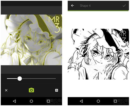 應(yīng)用打開(kāi)即是拍照頁(yè)面,會(huì)自動(dòng)提取畫面中的線條,你可以手動(dòng)調(diào)整精確度,最終它為你生成一張 png 圖片。