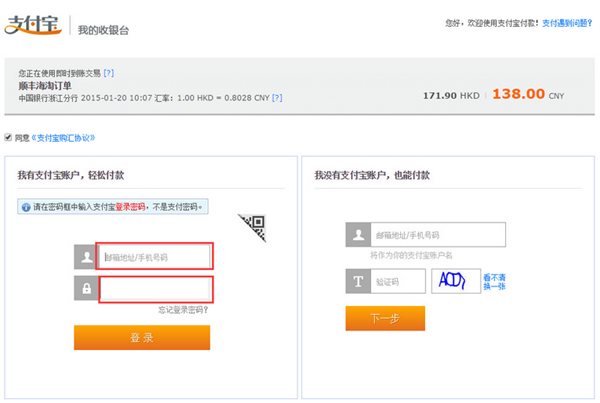 點(diǎn)擊去支付,輸入支付寶賬號(hào)和登錄密碼,進(jìn)入支付寶頁(yè)面。