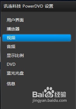 在訊連科技PowerDVD設(shè)置的界面,選擇”視頻“這一項(xiàng)。