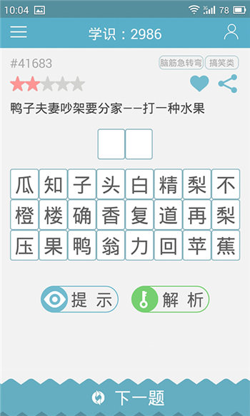 ☆推理、邏輯思維、腦筋急轉(zhuǎn)彎等多類型題目,適合多年齡段用戶。