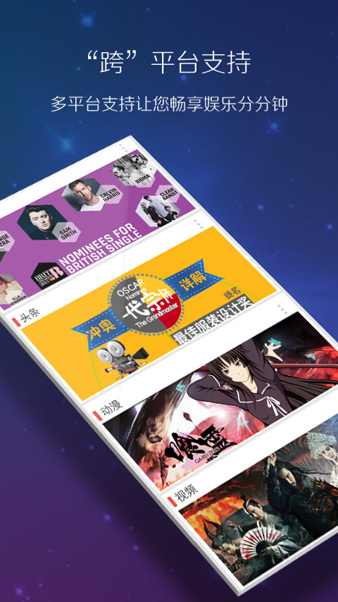 掌中娛樂涵蓋音樂、電臺、聽書、視頻、動漫、電影、微電影、應(yīng)用推薦,只需一個應(yīng)用,就能享用全部娛樂內(nèi)容。
