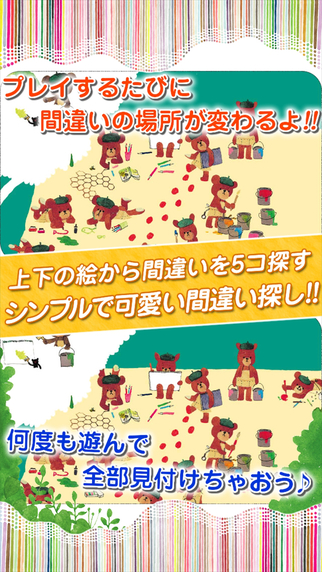《熊的學(xué)校:尋找杰克的錯(cuò)誤》是一款比較上下的畫(huà)尋找錯(cuò)誤的簡(jiǎn)單游戲。與經(jīng)典的游戲差不多都是找不同,不過(guò)比較兩幅畫(huà)要找出5個(gè)不同的地方。如果找到5個(gè)地方就算過(guò)關(guān),應(yīng)為沒(méi)有時(shí)間限制,手勢(shì)的限制,所以適合大人和小孩一起思考。另外,每一個(gè)關(guān)卡,就會(huì)準(zhǔn)備10種類的錯(cuò)誤,每個(gè)錯(cuò)誤點(diǎn)都會(huì)隨著改變,所以一關(guān)可以玩幾次都不會(huì)膩。另外,找到新的錯(cuò)誤會(huì)存到星星,可以利用這些星星開(kāi)放新舞臺(tái)。