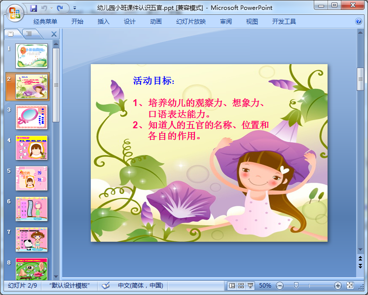 幼兒園認(rèn)識(shí)五官ppt是專(zhuān)為幼兒園老師們所準(zhǔn)備的ppt課件,里面有可愛(ài)且具有卡通色彩,能夠一眼吸引小朋友們的課件內(nèi)容,幫助幼兒老師們更好的傳授人體五官知識(shí)。