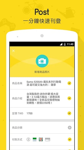 1.拍照、修圖、免費刊登, 一步完成:沒時間拍照上傳? 沒時間填一堆信息? YAHOO拍賣 APP結合拍照、修圖功能,一分鐘商品快速上架,免費刊登!2. 購物、付款、收貨,一指搞定,YAHOO拍賣 輕松付款有保障:讓你輕松瀏覽分類或搜尋全新或二手商品,并提供ATM、信用卡、超商取貨付款等多元交易選擇。商品一指快速入袋,再享全臺唯一5萬元買賣家高額雙向保障喔!