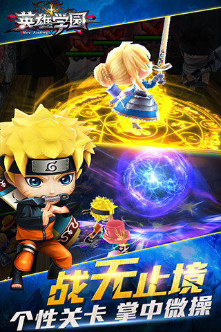 《英雄學(xué)園》是一款日式動(dòng)漫取材的英雄養(yǎng)成,以冒險(xiǎn)闖關(guān)拯救世界為己任的劇情游戲。我們?cè)鵀槁凤w守護(hù)夢(mèng)想而流淚,為堅(jiān)強(qiáng)卻又倔強(qiáng)的亞瑟王Saber著迷,因鳴人的話語(yǔ)戰(zhàn)斗熱血沸騰等等。