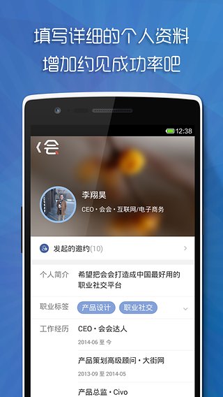 “會會”和Weave還不太一樣。Weave是通過Linkedin上的職業(yè)檔案來做速配。而“會會”則是一方主動發(fā)出主題邀請,感興趣的人報(bào)名之后,“約主”再挑選合適的人來參加。目前,“會會”支持的會面人數(shù)上限為 50 人,這決定了它切的不是大規(guī)模行業(yè)活動。以后會會也會支持一些機(jī)構(gòu)性質(zhì)的小型沙龍等。基于小型活動,“會會”也會推出相應(yīng)的建群機(jī)制,參加活動加微信群的場景大家應(yīng)該很熟悉,“會會”則這種場景下的建群更自動化。該團(tuán)隊(duì)共有 10 人,大都來自百度、阿里、人人。其創(chuàng)始人李翔昊曾在優(yōu)士網(wǎng)、經(jīng)緯網(wǎng)、大街網(wǎng)供職,被問及做職場社交的教訓(xùn),他說得很直接,就是“別照著 LinkedIn 抄“?!皶币勋@得經(jīng)緯數(shù)百萬人民幣天使融資,投資人正是投資陌陌的王華東。【軟件特點(diǎn)】
