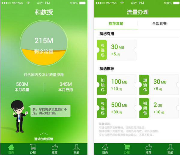 4、流量辦理加入推薦功能,系統(tǒng)智能為你推薦最適合你的套餐。