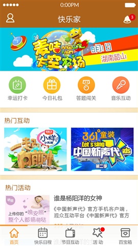 快樂(lè)家app for iphone版是金鷹卡通衛(wèi)視和上海海唯動(dòng)漫科技有限公司聯(lián)合出品的親子應(yīng)用平臺(tái)。打造安全、健康的移動(dòng)互聯(lián)網(wǎng)親子生活入口,通過(guò)寓教于樂(lè)的互動(dòng)方式全面提高孩子的情商、智商,培養(yǎng)良好的生活習(xí)慣。【軟件特點(diǎn)】