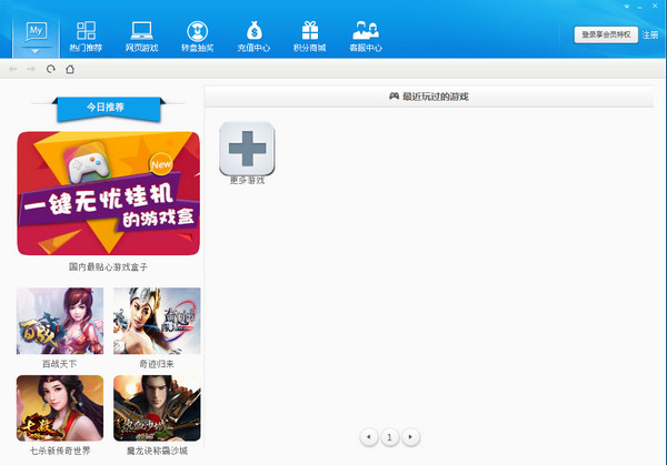 1.最頂尖優(yōu)化處理技術(shù) ,優(yōu)雅清新、簡(jiǎn)單實(shí)用。2.最佳用戶體驗(yàn)界面,玩游戲0延遲,瞬間即可選擇最近登錄游戲進(jìn)入,搶沙城無(wú)壓力!