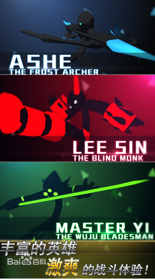 游戲的核心玩法其實(shí)就是典型的RPG玩法,玩家可以從強(qiáng)化裝備、升級技能等方面提升英雄的屬性,裝備的佩戴和強(qiáng)化非常地隨意,例如玩家可以隨意佩戴5件相同的裝備,然后全部強(qiáng)化到滿級。不過對于想瘋狂地刷圖刷BOSS的玩家,筆者建議還是合理搭配英雄裝備。隨著游戲等級提高,玩家可以組隊(duì)英雄掃圖,除了使用技能大招瘋狂屠殺小怪外,還可以實(shí)時(shí)切換英雄,享受不同的英雄玩法,實(shí)在是酷斃了!更難能可貴的是,游戲沒有復(fù)雜的主線任務(wù)和其他雞肋玩法,只有無盡的打斗,玩法非常純粹,并不搞太多花樣和心眼,技能連招時(shí)拳拳到肉的打擊感也是超贊,徹底征服了筆者,有種根本不想停下來的節(jié)奏!當(dāng)然,如果你是抱著尋寶的心態(tài)玩的話,估計(jì)你可能玩不到二十個(gè)關(guān)卡就放棄治療了,這其實(shí)也是這款游戲的不足之處,未能很好地抓住玩家的游戲心理?!菲鋵?shí)是一款橫屏動作手游,游戲中的角色取材自英雄聯(lián)盟里,例如蓋倫、寒冰、流浪、劍圣、小丑等英雄,這些英雄都是使用火柴人的剪影手法展現(xiàn)給玩家,雖然只是英雄剪影,不過依然很有親切感!小聲告訴大家,這些英雄的獲得方法也是比較容易的,即使你不花錢,也是可以努力掙鉆石解鎖的哦。【競技場攻略】