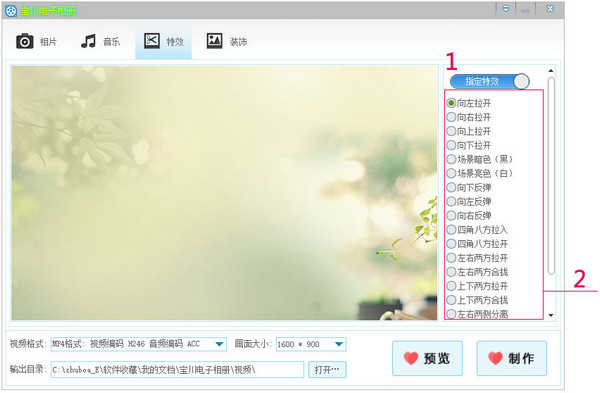 寶川電子相冊(cè)制作軟件是一款小巧好用的電子相冊(cè)制作工具,用戶可以將電腦中的照片添加到軟件之中,在加上喜歡的特效、背景音樂等內(nèi)容,一個(gè)完美的電子相冊(cè)就制作好了,幫助用戶保留完美的瞬間。