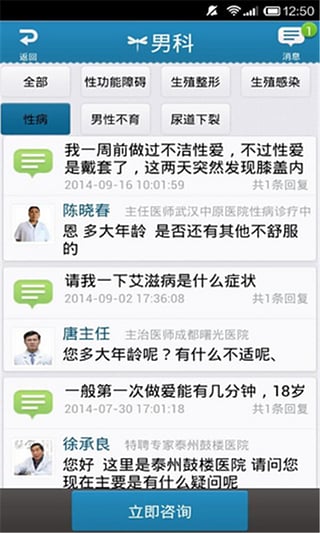 1.男科,前列腺科,肛腸科,皮膚科,神經(jīng)科,口腔科,眼科,骨科等多個科室提供在線咨詢;