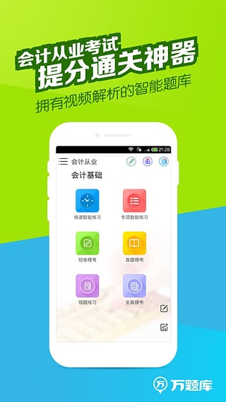 會(huì)計(jì)從業(yè)萬(wàn)題庫(kù)軟件是一款免費(fèi)的會(huì)計(jì)從業(yè)資格提分通關(guān)神器。海量高品質(zhì)的題庫(kù),采用逐題視頻解析的方式,為你落實(shí)每一個(gè)重要知識(shí)點(diǎn);精選最新高質(zhì)量真題,通過(guò)人工智能算法一對(duì)一智能出題,快速掌握重要考點(diǎn)。