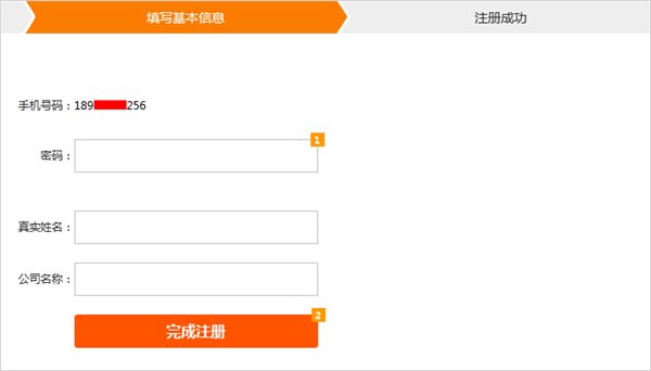 3、完善個人資料,填寫登陸密碼,真實姓名,公司名稱后完成注冊