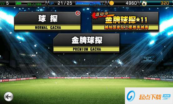 球探可以選球探和金牌球探,消耗200友情點抽一次球探,可以獲得技能卡、教練卡及稀有的球員;消耗200個金球抽一次金牌球探,必獲得3星或以上球員。