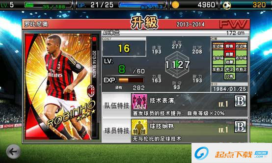 球員升級需要消耗球員卡片和資金,球員卡片就是比賽勝利后獲得的低星級的材料卡啦,升級完成后材料卡消失。