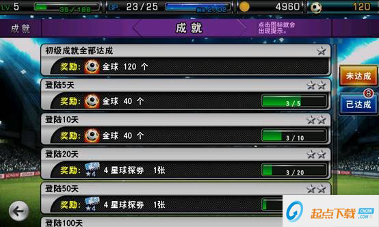 成就是獲得高星級球員的好地方,不過條件有點高,連續(xù)登陸n天,小伙伴加油吧。