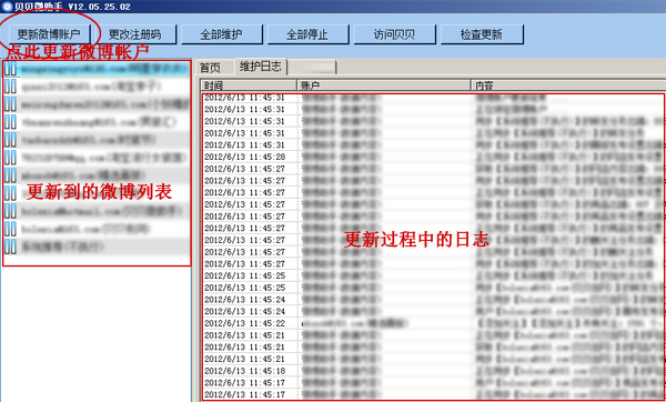第二步:點(diǎn)擊更新微博帳戶,左側(cè)欄會列出您在設(shè)置中心添加的帳號列表。