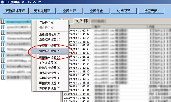 第五步:設(shè)置完成后,點(diǎn)擊選中帳號,再右鍵點(diǎn)擊帳號名會彈出功能菜單,選擇“開始維護(hù)”如下圖。