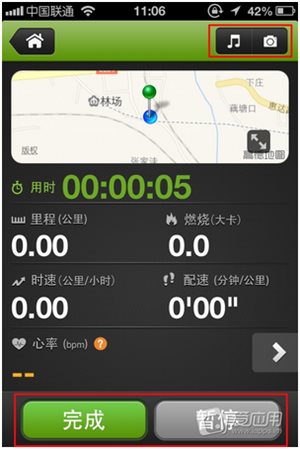 在計(jì)數(shù)頁(yè)面,可以選擇右上方的音樂(lè)和圖片按鈕,可以在跑步時(shí)聽(tīng)音樂(lè)和為本次運(yùn)動(dòng)添加圖片。不過(guò),在開(kāi)啟咕咚運(yùn)動(dòng)時(shí)可以另外打開(kāi)音樂(lè)播放器不產(chǎn)生影響!在計(jì)數(shù)頁(yè)面可以記錄運(yùn)動(dòng)的耗時(shí),里程,燃燒熱量(大卡),時(shí)速等,如需心率數(shù)據(jù)需購(gòu)買配件!