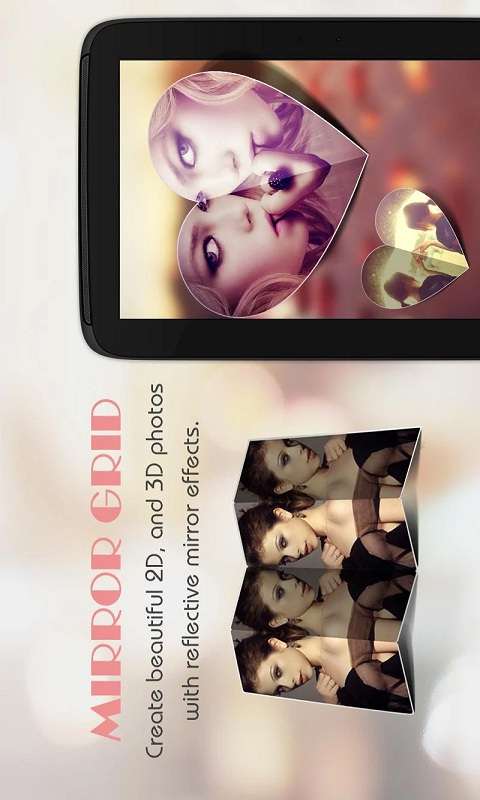您可以通過(guò)這個(gè)魔術(shù)鏡子制作出令人驚訝的2D,3D照片反射效果,可制作照片的鏡面拼圖。魔鏡秀秀:最好用的免費(fèi)鏡面效果應(yīng)用。