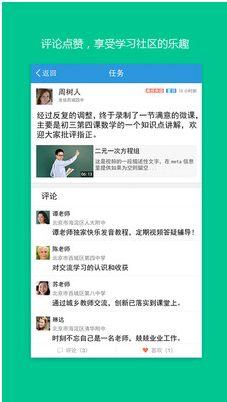 教師可通過該平臺體驗移動學(xué)習(xí)的便捷,隨時隨地的課程學(xué)習(xí)可以使教師提升教學(xué)能力,提高教學(xué)效率。同時教師還可以加入學(xué)習(xí)小組交流分享感興趣的內(nèi)容,互幫互助進(jìn)行備課、上課、評課等重要教學(xué)環(huán)節(jié)。