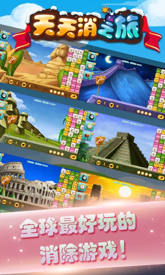 天天消之旅app是一款畫面卡通的消除類游戲,該游戲與其他消除游戲玩法相似,玩家只需要累計三種同樣圖案的方塊,就可以成功配對消除,并獲得分?jǐn)?shù),當(dāng)分?jǐn)?shù)達(dá)到目標(biāo)值就可以成功闖入下一關(guān)了。