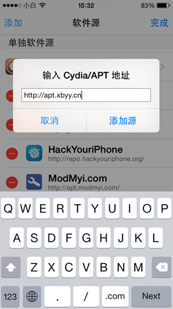 12. 點(diǎn)擊左上角“添加”,然后輸入http://apt.xbyy.cn點(diǎn)擊“添加源”